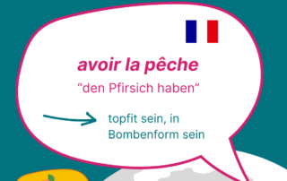 Unser französisches Proverb des Monats: „avoir la pêche“ = „den Pfirsich haben“ Bedeutung: topfit sein, in Bombenform sein